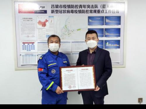 日前,吕梁市蓝天救援队还为每一位捐赠师生出具了一份电子捐赠证书以致谢忱。