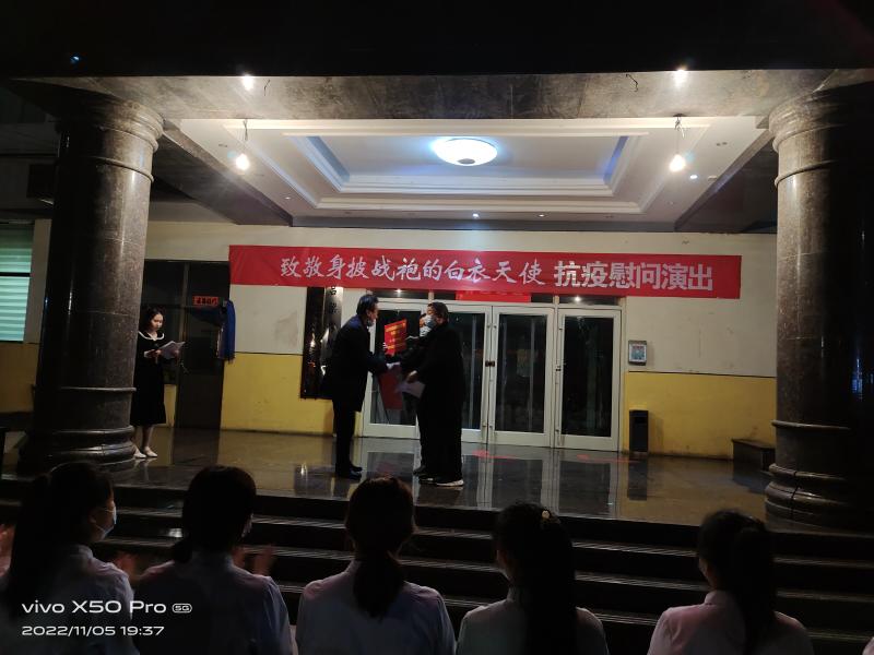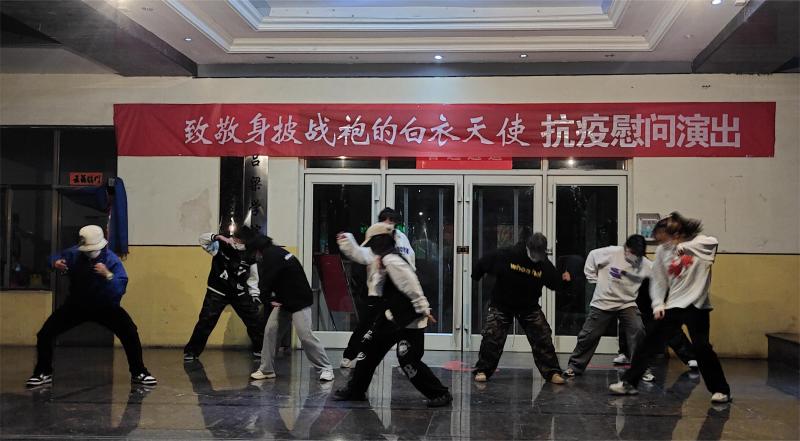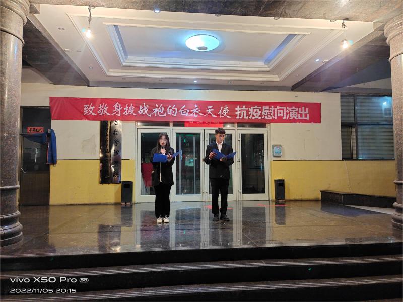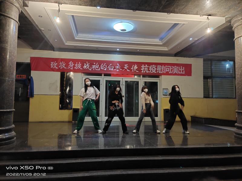 病毒无情人有情,为了感谢在校园疫情防控工作中冲锋在前、英勇奋斗的白衣天使们,11月5日晚,betway88西汉姆音乐舞蹈爱好者协会走进校医院,举办“致敬身披战袍的白衣天使”抗疫慰问演出。betway88西汉姆联党委常委、副院长王枝胜,betway88西汉姆联医院领导和全体医护人员,学校防控办、团委、学生处、后勤处、保卫处和部分教学系部负责人,怡丁轩餐厅负责人一同观看演出。怡丁轩餐厅负责人还向医护人员捐赠抗疫物资。