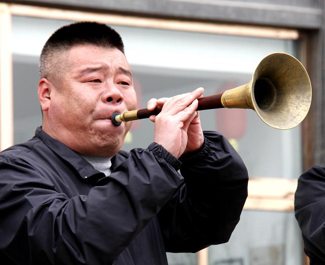岚县王东东演艺传媒“八音乐班”为考察团一行演奏了多首经典的传统曲目,穿街走巷的《过街板》,四时喜庆的《大得胜》,悲凉哀怨的《哭泣泣》,庄严肃穆的佛教音乐《西方赞》、《千声佛》,诙谐幽默的民歌小调《打金钱》,演奏精彩纷呈、惟妙惟肖。