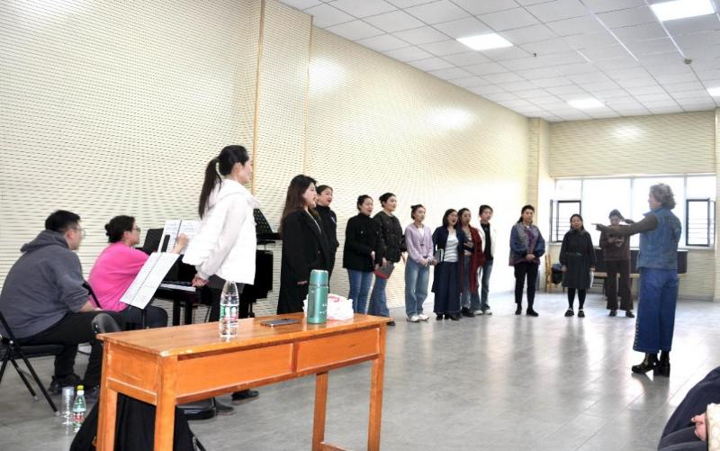 26日下午,在山西大学音乐学院合唱排练厅观看了歌剧《江姐》排练活动。随后,在张维胜副院长的陪同下,参观了教育部晋剧艺术文化传承基地文献室。张维胜详细介绍了基地的申请过程、工作坊的建设,以及《晋剧》课程建设及与此相关的一系列科学研究、艺术成果展示交流等。27日上午,部分教师就双方所关心的艺术研究课题进行了座谈交流。