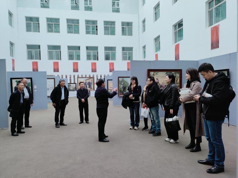 座谈会后,贾国平教授、张征教授一行在薛晋文院长陪同下在betway88西汉姆一层展厅参观了油画课程组主办的教师示范作品展。