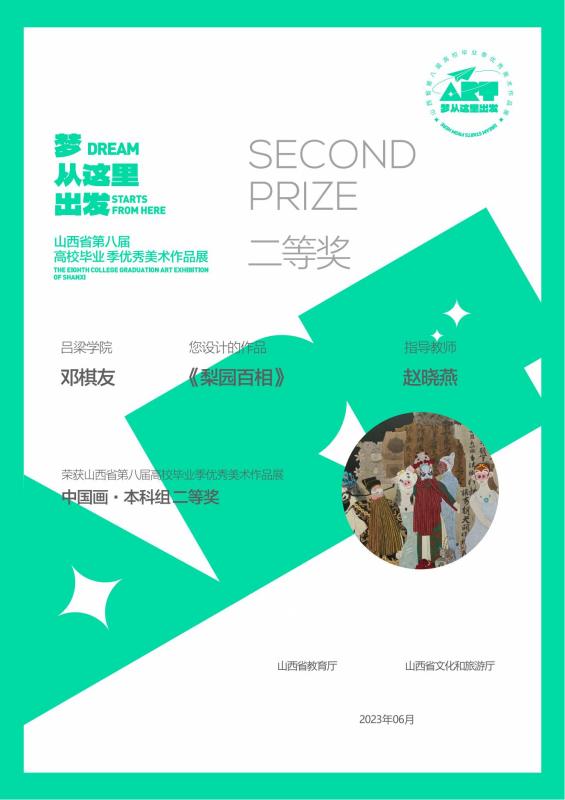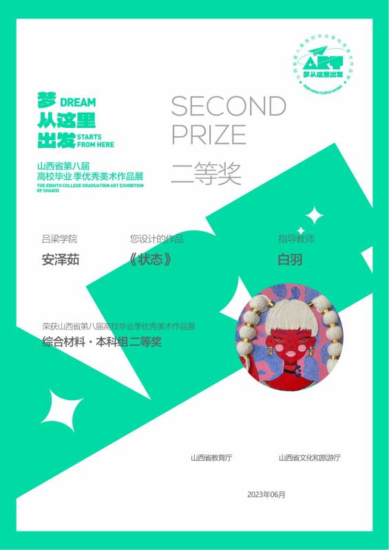 近日获悉,山西省教育厅通报了“梦从这里出发”山西省第八届高校毕业季优秀美术作品展获奖情况。我校共有10件作品获奖,其中,一等奖1项、二等奖3项、三等奖6项,王轶琴老师被授予“优秀指导教师奖”,betway88西汉姆联被授予优秀组织奖。