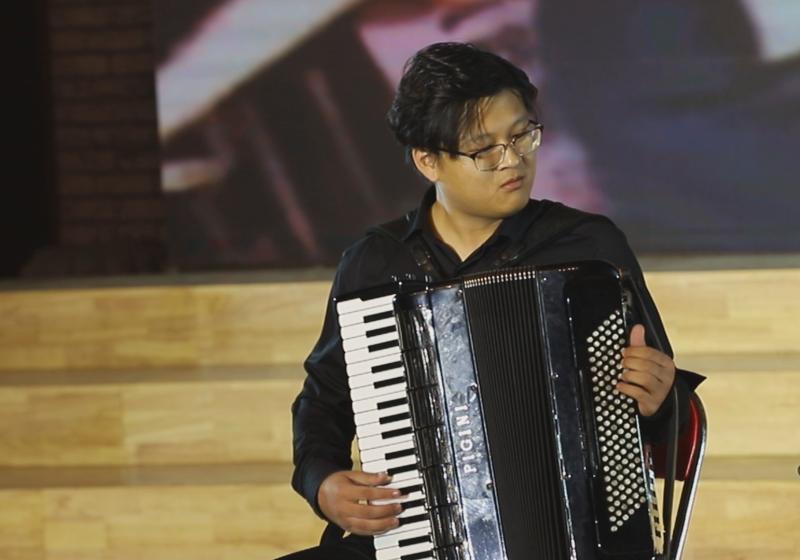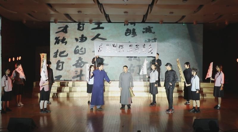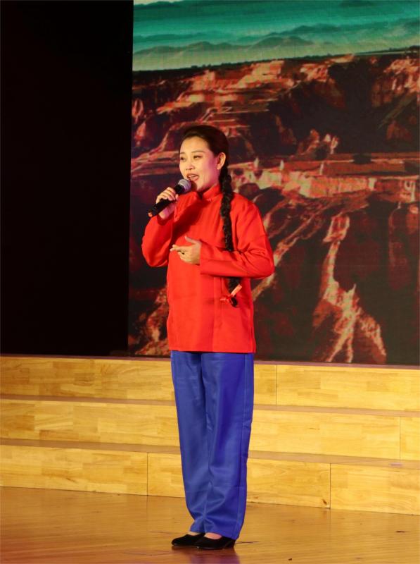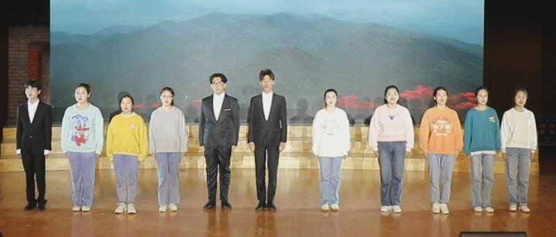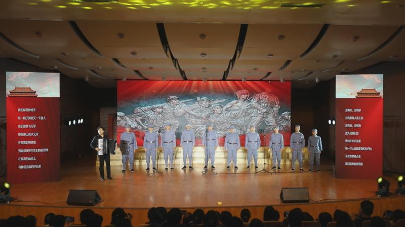 开场曲目民乐合奏《贺司令员到我家》,熟悉的旋律,再现了伟大的无产阶级革命家、军事家贺龙率领的八路军第120师驻扎吕梁12年与晋绥边区人民结下的鱼水情深。欢快的舞蹈《添仓》,表现了晋绥边区人民支援前线打胜仗的情景和对和平生活的美好向往。歌伴舞《习近平总书记来到咱吕梁》,深切表达了吕梁人民牢记嘱托、感恩奋进,打赢脱贫攻坚战、谱写高质量发展的新篇章的坚定信心和决心。诗朗诵《一本书,一座山》,满腔豪情、高亢激昂,讲述了《吕梁英雄传》是吕梁人民血与火的战斗史诗,是吕梁精神的生动教材与文化丰碑,滋养了一代代中华儿女的心灵。“大山就是展开的巨著,巨著就是挺立的大山。”现场师生回味悠长,深受感染与启迪。手风琴独奏《解放区的天》节奏明快、旋律优美,向前辈致敬、向经典致敬、向烽火岁月致敬。根据晋绥边区真实历史故事创作的小品《军妈妈》,堪比沂蒙红嫂、太行奶娘,剧情感人至深,现场观众泪流满面。歌剧《刘胡兰》选段《一道道水来一道道山》、晋剧刘胡兰选段《九月里》,生动再现了刘胡兰平凡而伟大的“生”,慷慨而光荣的“死”。情景剧《回来吧,贺昌》,以时代的名义向英烈致敬,用艺术的手法呈现红色文化的魅力。男生小合唱《游击队歌》,带领观众感受游击队员在敌后艰苦环境中蔑视敌人、战胜困难的革命乐观主义精神,感受同仇敌忾的民族抗争精神,令人心潮澎湃、热血沸腾。《吕梁山大合唱》是迄今为止唯一反映吕梁风情与生活斗争场景的大合唱作品,多声部合唱强化浓郁的民间风味和艺术表现特征,让历史珍宝在新时代熠熠闪光。