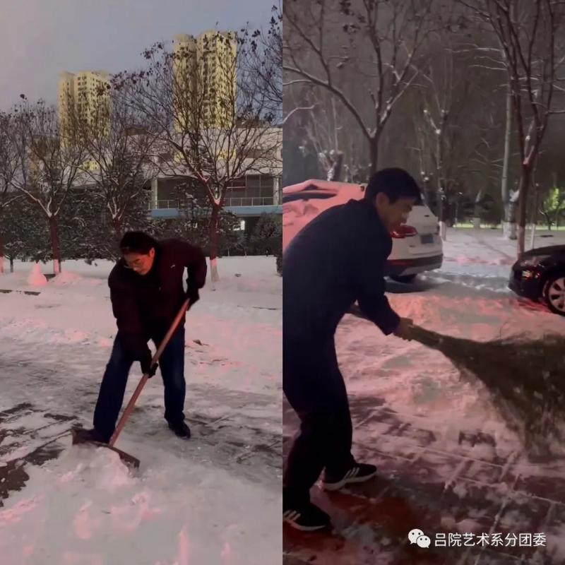 在扫雪活动中,我系党总支书记刘震军和系主任张云奇一起带领党政领导班子,分团委书记以及辅导员老师们也参加到了扫雪活动中来,与学生会负责人一起组织,一起劳动,并为同学们展开动员会,号召同学们积极参加,特别是师生党员们更要率先行动起来,把今天的劳动作为一次主题党日活动来开展。在活动过程中刘震军书记对来积极参加本次活动的每一位同学提出了表扬,同时他鼓励同学们站好最后一班岗,将扫雪活动圆满完成。