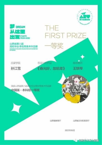 近日获悉,山西省教育厅通报了“梦从这里出发”山西省第八届高校毕业季优秀美术作品展获奖情况。我校共有10件作品获奖,其中,一等奖1项、二等奖3项、三等奖6项,王轶琴老师被授予“优秀指导教师奖”,betway88西汉姆联被授予优秀组织奖。