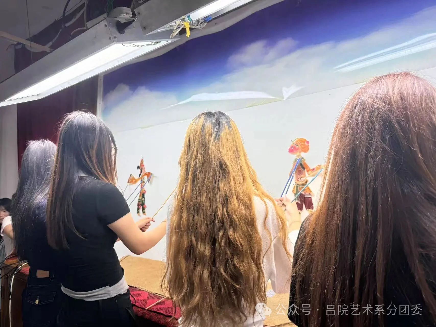 工作室里,同学们见识了皮影制作的精湛工艺。从选皮、制皮到画稿、雕刻、上色,每一步都凝结着匠人的心血。栩栩如生的人物与动物形象,让大家惊叹于传统技艺的精妙。在木偶戏工坊,形态各异的木偶同样令人大开眼界。老师傅介绍,木偶头部多选用樟木、柳木雕刻,因其质地轻、不易开裂,能让木偶表情更灵动。他还展示了悟空 “喷火” 原理与木偶制作方法,让同学们对传统工艺有了更深认识。