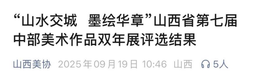 2025年9月19日,我系教师梁宇、王瑞兵、吕宇朝、杨岩、张彦伟及美术学专业2202班学生薛宇宇、李慧琳、郭玉娟、牛乐的作品入选由山西省美术家协会主办的《“山水交城 墨绘华章”第七届山西中部美术作品双年展》。本次展览4名学生入展,均为梁宇老师《中国画创作》课程的教学成果,这些作品围绕山西中部地区历史文化传承、新时代新气象、人民美好生活及自然风光、人文景观等主题进行精心创作。