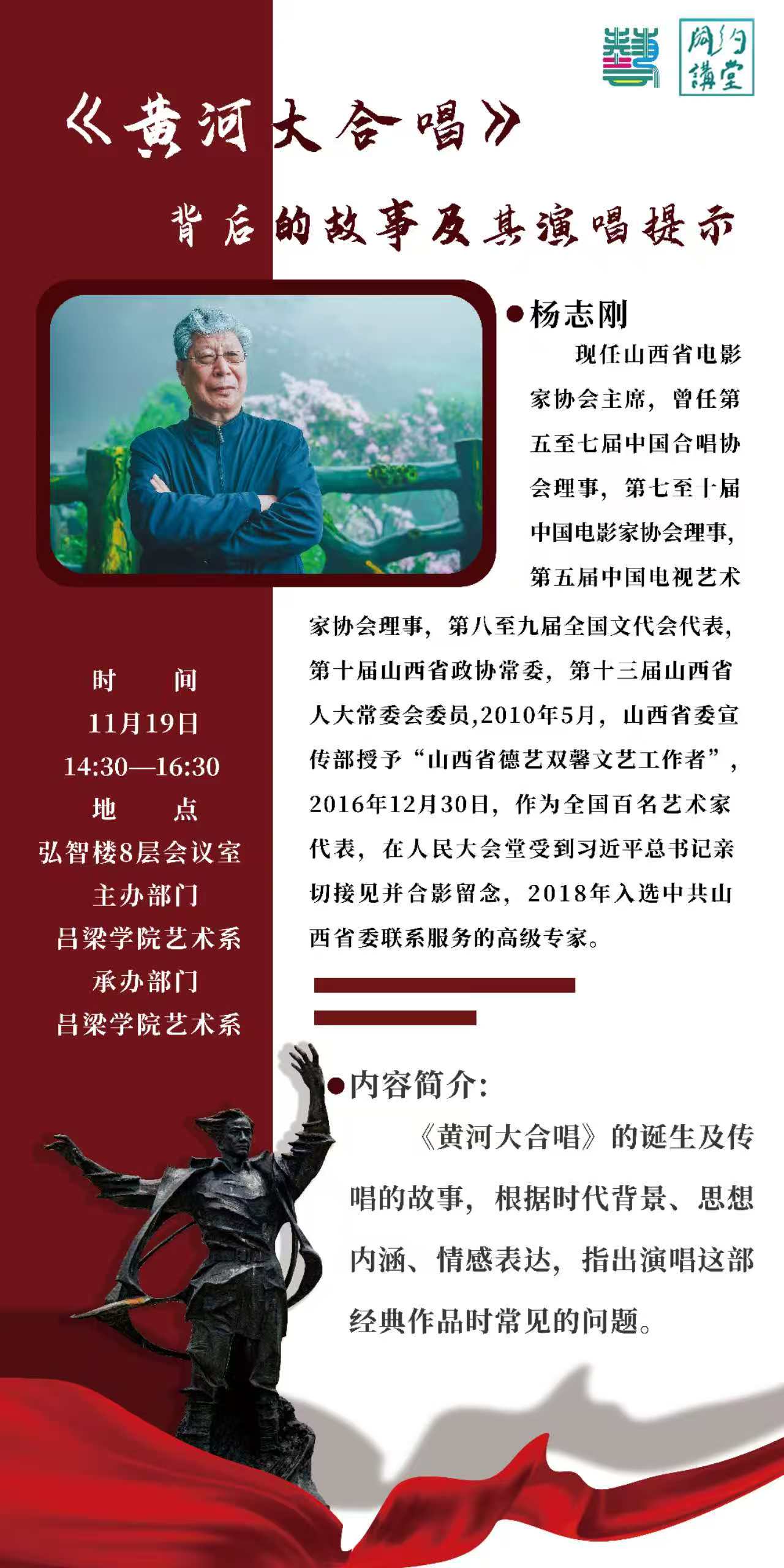 为深化betway88西汉姆师生对经典红色合唱作品的理解,破解演唱实践中的核心难题,11月19日14:30-16:30,我系在弘智楼8层会议室举办了由杨志刚(山西省电影家协会主席)主讲的“ 《黄河大合唱》背后的故事及其演唱提示”专题讲座,betway88西汉姆领导、师生共计120人参与,讲座全程气氛活泼,收获满满。