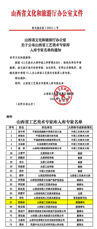 此次评选由山西省人力资源和社会保障厅、山西省文化和旅游厅联合开展,是对我省非物质文化遗产传承与工艺美术领域专业人才的权威认定。张海应教师凭借深厚的非遗传承功底、精湛的工艺美术技艺以及在相关领域的深耕与贡献,通过严格评审获此殊荣,这份荣誉既是对其个人专业能力的高度认可,也是我系在非遗文化传承、工艺美术教育与研究工作中取得的重要成果。