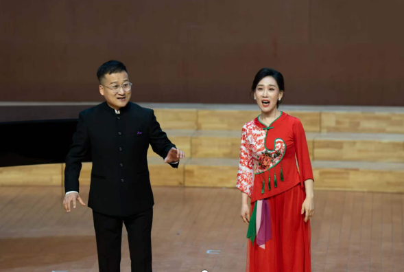 音乐会分为“烽火岁月·革命征程”“时代新声·血脉传承”上下两篇,精选多首红色经典曲目,以艺术之力传承红色精神。上篇聚焦东征烽火,《红军东征歌》用铿锵旋律再现红军将士强渡黄河、奋勇向前的壮志豪情;《刘志丹》以质朴民谣歌颂革命先烈的赤诚担当,诉说着陕甘根据地军民同心向党的火热情怀;《沁园春·雪》则以荡气回肠的旋律,将诗词的磅礴气势与革命豪情相融,展现伟人的博大胸襟;《河边对口曲》《红军东征驻我乡》《在太行山上》等曲目,还原了民族苦难中中华儿女同仇敌忾的抗争初心以及浴血抗战的壮烈场景。下篇立足时代传承,《沙场》《吕梁颂》融入山西民歌元素,歌颂吕梁人民的坚韧不屈与家国情怀;《曙光照神州》《你像太阳》传递出革命岁月中对光明的向往与信仰的力量;唢呐版《红军哥哥回来了》生动再现百姓喜迎红军凯旋的欢腾场景;《老百姓总动员》《东征长歌》则分别展现了吕梁军民全民抗敌的决心。