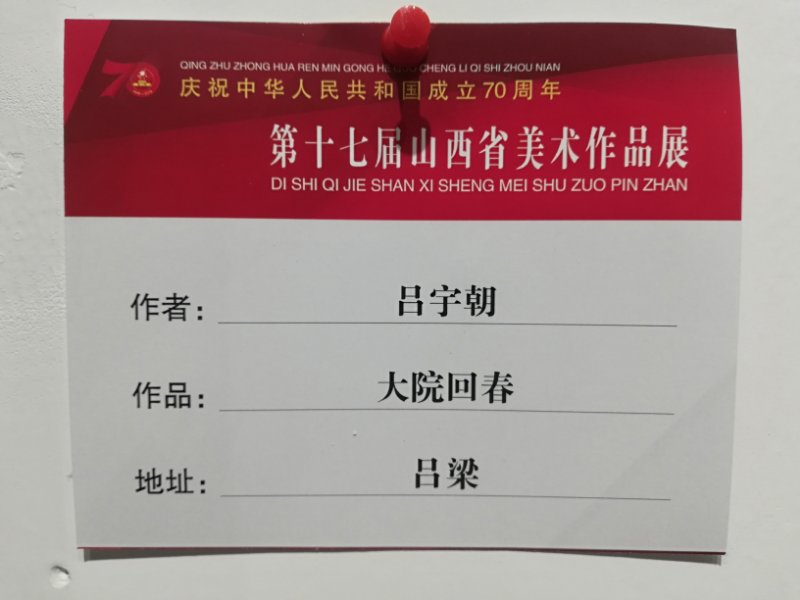 2019年7月2日上午10时,由山西省文联、山西省美术家协会主办的以庆祝中华人民共和国成立70周年为主题的“第17届山西省美术作品展”在山西省美术馆开幕。我系美术专业教师吕宇朝的油画作品《大院回春》、王原平的油画作品《黄河的回声之一》入选本次展览。