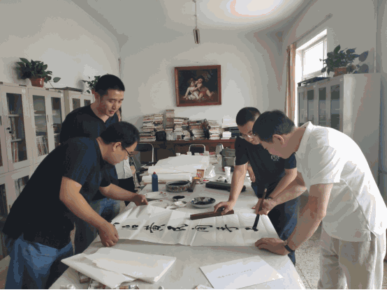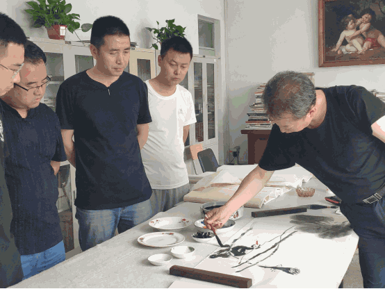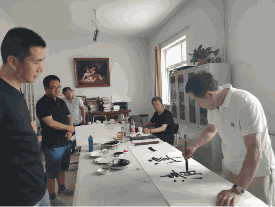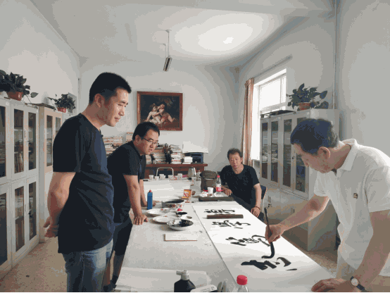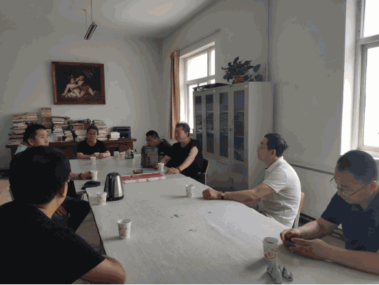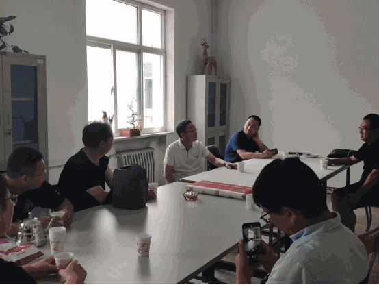 2019年7月18日上午,民进山西开明画院副院长席德生先生、民进山西开明画院副秘书长刘峻岭先生、民进山西省委会社会服务部薛二勇先生一行到betway88西汉姆进行学术交流与座谈。针对我系美育现状进行了了解,betway88西汉姆主任张云奇对betway88西汉姆美术学专业及绘画专业进行了简单的介绍。大家对betway88西汉姆联美术馆的必要性等方面提出了建设性意见和建议。交流期间,刘峻岭先生即兴进行作画,席德生先生挥毫泼墨,为我系“晋陕沿黄民间手工艺展览馆”题写了馆名。
