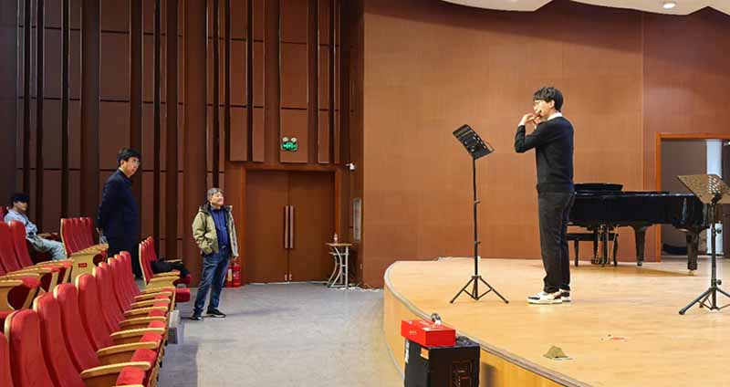 10月27日下午到28日上午,贾老师先后走进课堂和音乐厅,观摩了三位青年教师的授课和民族器乐学生的演奏,并针对不同年级的学生开展访谈。贾国平教授对老师们在课堂中积极调动学生学习热情、课程中努力渗透民族音乐特别是山西民间音乐素材,给予了高度赞扬。贾老师认真观察学生们的学习状态,他以平和谦逊的态度、亲切和蔼的语气,拉近了大作曲家与新生间的距离,学生们积极发言,充分表达自己的想法。他的莅临让师生们备受鼓舞,更加专注于教学过程。随后,贾教授同考研学生进行了深度交流,他以丰富的经验和深厚的学术造诣,为考研学生答疑解惑,提供宝贵的建议和指导,现场气氛十分热烈,贾教授还与学生们亲切地合影留念。