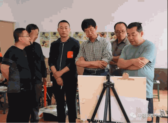 杨主任一行参观完画展之后,来到中阳职中画室指导教学
