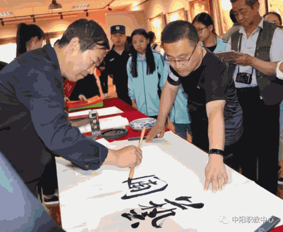 仪式结束后,与会嘉宾参观了画展并为中阳职中挥毫留墨