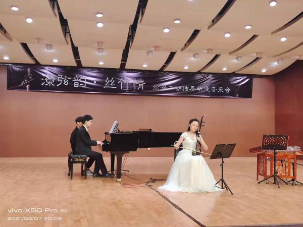 本场音乐会是2021届毕业生音乐会中唯一的一场独奏音乐会。其既立足于本土音乐文化自信的传承与传播,更展现了当今国乐的风采。曲目选择精心考究,内容丰富,形式多样化,使在场的所有听众享受了一场民族传统乐器——二胡的“饕餮盛宴”,同时也展现了我系良好的系风、学风。