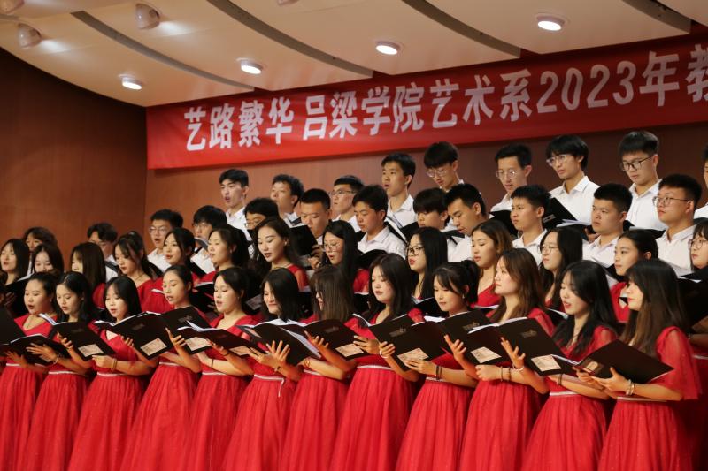 音乐会上篇“岁月峥嵘”,如星合唱团演唱了《吕梁颂》、《吕梁山大合唱》等作品,选用极具有代表性的地域艺术名片,歌唱了美丽的吕梁山,赞颂了抗战时期吕梁人民做出的巨大牺牲和伟大贡献。带动在座的同学们一起、传承红色基因、歌唱伟大时代;竹笛独奏《早晨》描绘了春天的早晨,林间鸟儿欢唱、树下孩童嬉戏的热闹场景;古筝独奏《幸福渠水到俺村》表达了红旗渠人民的劳动与生活的热情;《祖国我的最爱》唱出了中华儿女的赤子之心。
