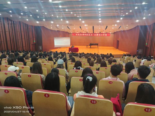 4月27日下午,betway88西汉姆党总支联合外语系党总支、思政系(部)党总支在音乐厅开展“红色旋律中的党史”主题党日活动,重温入党誓词、聆听主题党课、唱响红色经典、凝聚奋进力量。巡回指导组王虎年、刘离生、王渊出席指导,betway88西汉姆党总支、外语系党总支、思政系(部)党总支近400名党员师生参加了活动。