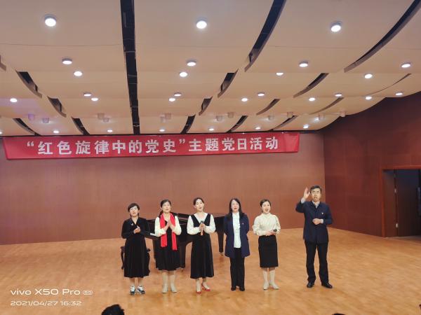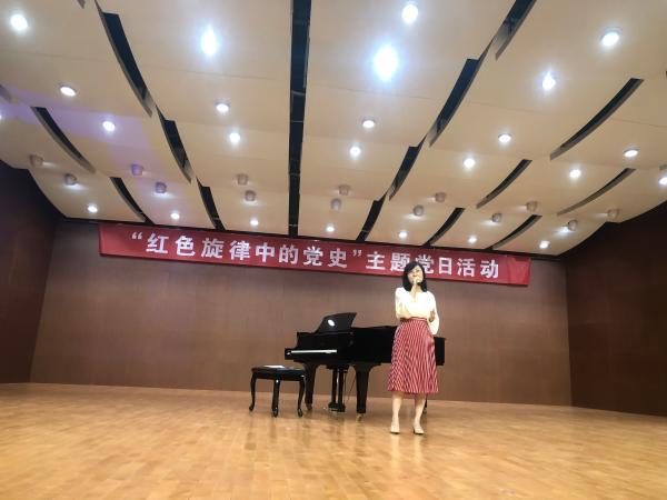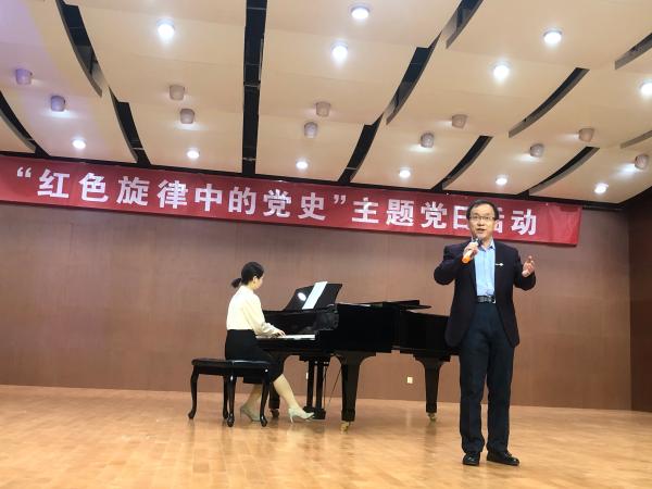党课后,9位教师党员以及30余名学生党员先后登台演出了具有代表性的红色歌曲及器乐曲。从中国共产党诞生到大革命时期,再到中央苏区时期、抗日战争时期、解放战争时期,到新中国成立后、改革开放、建设中国特色社会主义时期,主持人薛佳瑜老师将各个时期的红色经典音乐背后的动人故事、音乐原理等娓娓道来。由李晋东老师指挥、betway88西汉姆2018级音乐学专业师生合唱的《十送红军》,描述了抗战的艰苦和军民鱼水情深,表达了革命根据地人民对红军的深厚感情以及对革命胜利的强烈期盼。betway88西汉姆教师薛霞独唱《妈妈教我一支歌》,讲述了共产党在每一位中国人心中不可动摇的崇高地位,把对党的信任、对党的热爱、对党的信念一代一代地传承下去。betway88西汉姆教师张丽艳二胡独奏《北京有个金太阳》,反映了藏族人民翻身得解放、由衷感谢毛主席感谢共产党的深厚情感。betway88西汉姆教师吕宇朝演唱《红星照我去战斗》,表达了勇挑革命重担、紧跟党的脚步、砸碎旧世界、赞美新河山的宽广胸怀。思政系(部)教师李瑜演唱《我和我的祖国》,用抒情的曲调演绎了内心的激情,将优美动人的旋律与朴实真挚的歌词巧妙结合起来,表达了对伟大祖国的衷心依恋和真诚歌颂。外语系教师高永梅演唱《唱支山歌给党听》,把党比作母亲、党更甚于母亲,是党带领我们闹革命得解放,才有了今天的幸福生活。betway88西汉姆教师薛佳瑜演唱《不忘初心》,激昂的旋律激励着在场的全体师生不忘初心、砥砺前行,把活动掀向高潮。外语系教师李红兵演唱《清晰的记忆》,一片真情赞颂党,唱出了对党的感激之情。betway88西汉姆教师郭洪涛钢琴独奏《绣金匾》,抒发了广大人民群众对毛主席、朱总司令的热爱和对人民子弟兵的深厚情谊。耳熟能详的红色经典旋律盘旋在音乐厅上空,激发观众的强烈共鸣,许多观众轻声跟唱,全场掀起阵阵红色声音力量的高潮。主题党日活动在全体人员齐唱《没有共产党就没有新中国》的激昂澎湃歌声中结束。