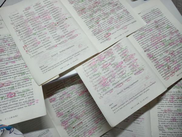 目的是做精读。不求快速不求数量只求吃透。当然是卡时间做。最后三年的保留,要到最后自己三小时模拟考试用。刚开始做卷子可以分开部分,一天做一篇阅读精读这样。然后到你自我感觉慢慢的一次性两篇阅读。四篇阅读。或者一次性完型+新题型+翻译。阅读一篇控制在十分钟,到后面可以依自己情况逐渐缩短。最差最底线就是十分钟一篇。自己定闹钟。