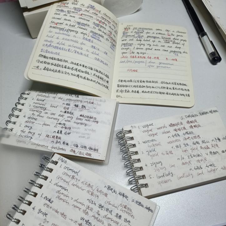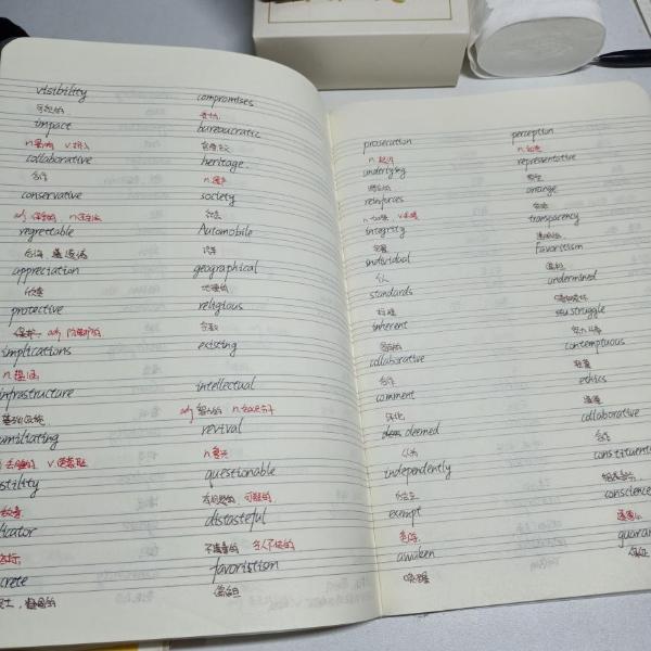 除了单词,就是长难句,我在微博关注了一些考研英语的老师,他们每个人都会发一些各自的每日一学,类似这样的。我选择了屠浩明老师,他会发微博每日打卡十个单词,以及每日一个长难句。我都准备了小的笔记本,每天跟学,并标注日期。这样会成为自己的动力,在你信心不足的时候,或者你觉得自己明明在学确不知道自己学了哪些的时候,可以回头看。要学会给自己留下努力的足迹,也许你会自我欺骗,觉得抄抄笔记就是学了,但是我相信这些耗时短的小事,努力去做会收获巨大。也许还会养成坚持做事物的小习惯。