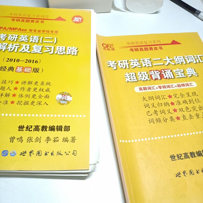 英语就是这样,每天看每天记每天复盘。直到九月份准备刷真题,买了小黄书一套。里面有送一本薄的考研单词(超级背诵宝典)。内容是按首字母顺序往下排,上面标注了例年考研词汇出现的次数。有标数字的我都记了。后面有不需要看的部分,是扩充词汇。前部分的数字越高代表出现次数越高,那么就越要掌握。一共五十页左右,我分成五天一个轮回每天看十页。