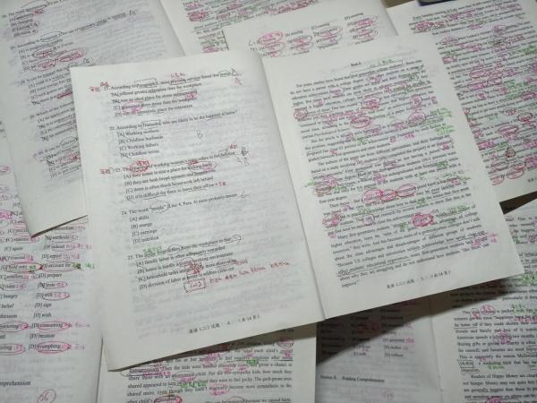 卷子要保留好,精读之后每天复看,记里面出来的词以及一些短语。我大概是每天看昨天做过的量或者一张卷子。后期十一十二月是每天复看两张卷子的量。