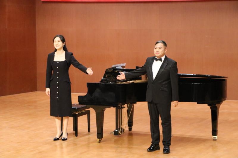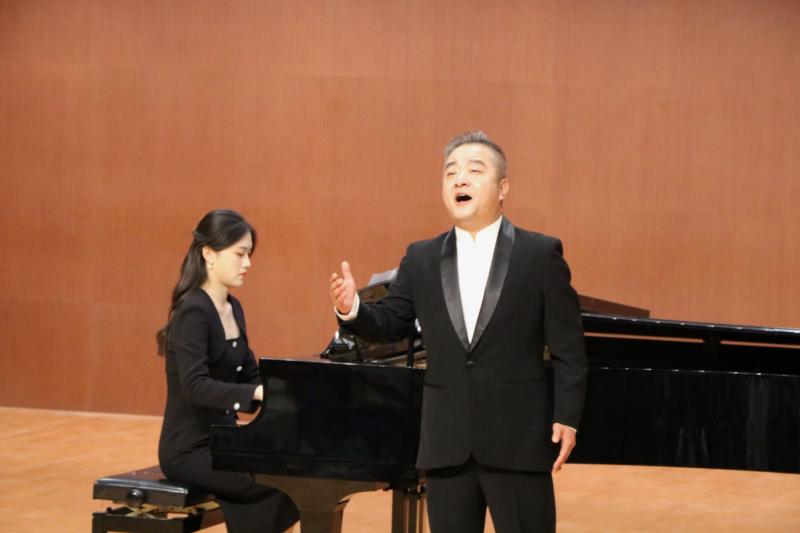 声乐作品中有反映革命战争年代伟大抗争的《我的爱人你可听见》《松花江上》《再看一眼亲人》,也有歌颂党、歌颂新生活的《把一切献给党》《你来了》《北京颂歌》《党啊亲爱的妈妈》《最亮的火焰》,李晓军、郭向东、郝亚琼、董永强、白剑、侯健、吴晓磊、薛霞几位老师以熟练的声乐技巧、饱满的情感表达,准确地演绎和呈现了每个作品的精神气韵,让全体观众深受感染。