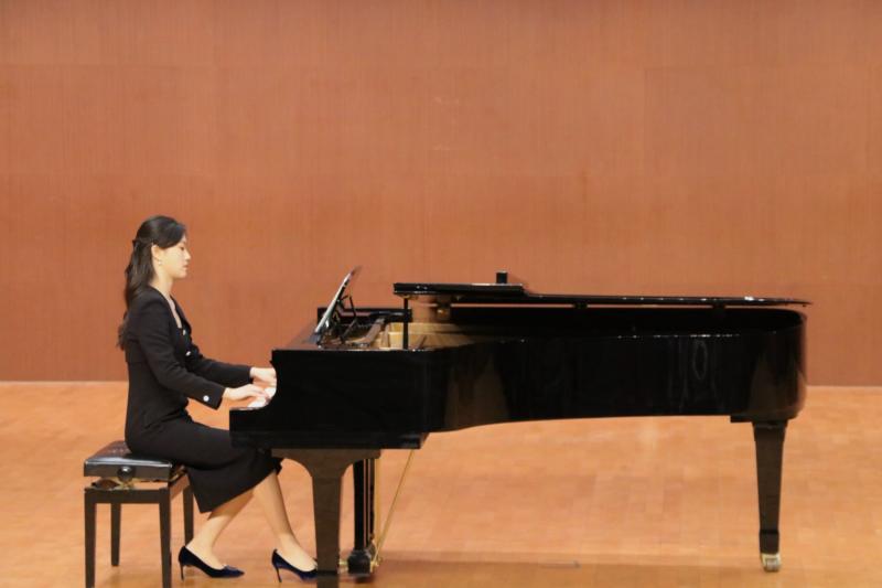 中央音乐学院青年教师、中央音乐学院派驻吕梁新时代文明实践文艺宣讲师曹嘉琦老师演奏的钢琴独奏曲《皮黄》,以优雅的台风、精湛的技艺、晶莹剔透的音色、热情而利落的演奏风格,将音乐会推向了高潮。同时,曹嘉琦老师承担了本场音乐会大部分曲目的伴奏任务。