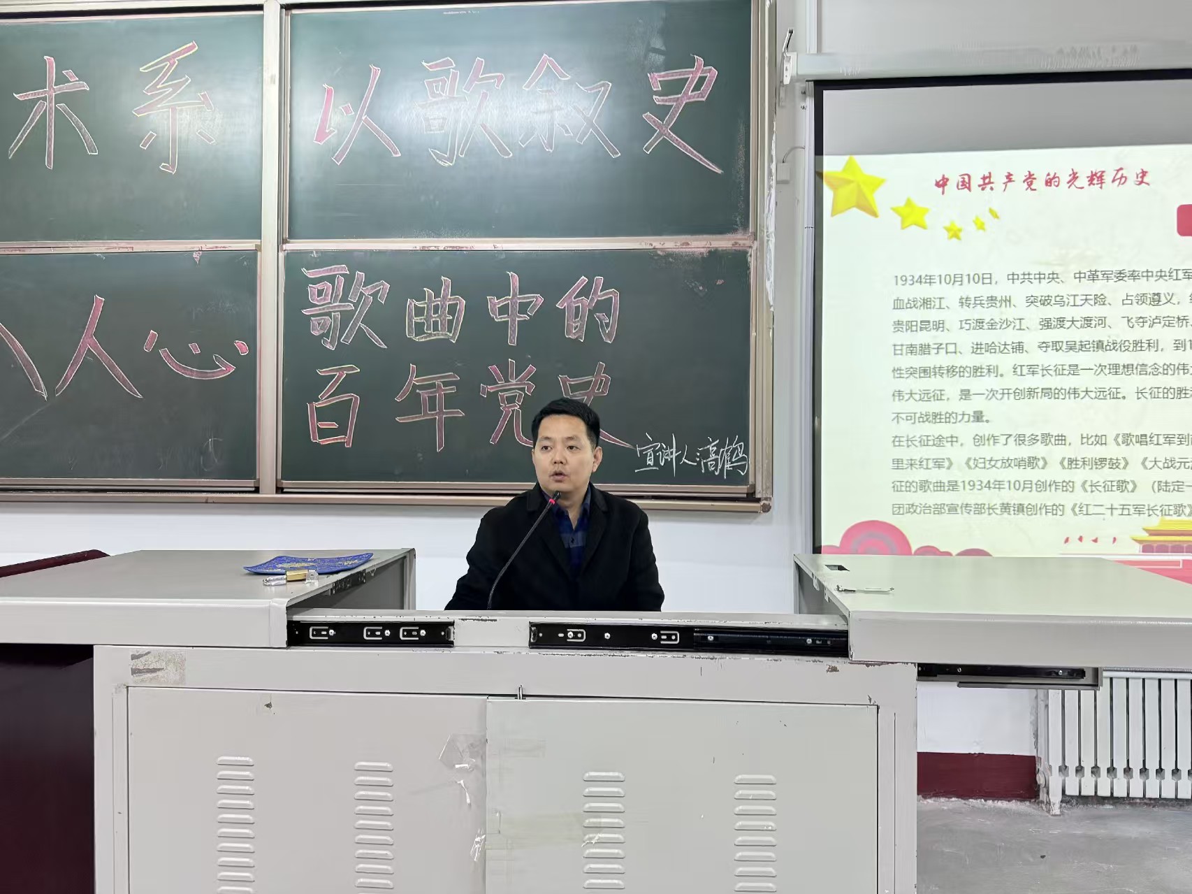 高鹤教授以时间为轴线,采用“音乐作品+党史讲解”的方式,为betway88西汉姆师生讲述了新民主主义革命时期、社会主义革命和建设时期、改革开放和社会主义现代化建设新时期、中国特色社会主义新时代四个时期创作出的经典歌曲,将音乐与党史有机结合,以史串歌、以歌学史,用歌曲见证了中国共产党的救国大业、兴国大业、富国大业、强国大业。