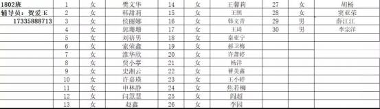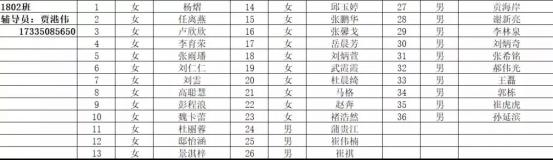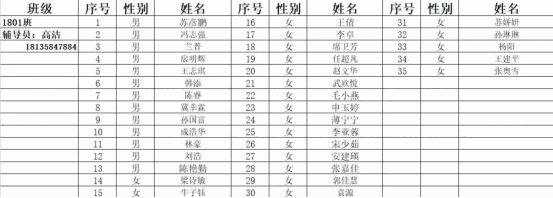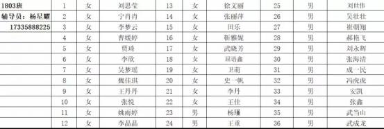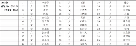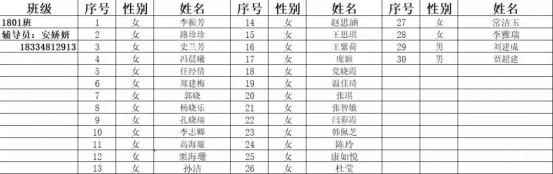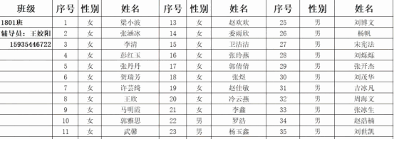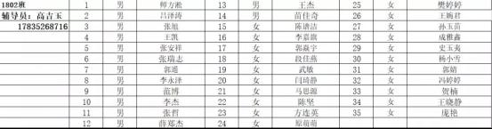 2018级betway88西汉姆音乐新生分班表betway88西汉姆音乐学1801班